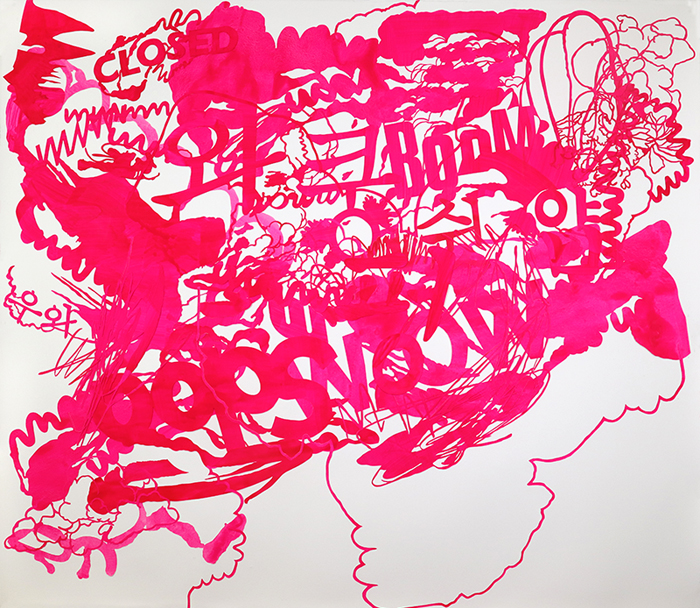 Sound Words Sumi-ink on paper, 44”x30”, 2018-present Read Text Installation view of solo show at A.I.R. Gallery, Brooklyn, NY, 2018 Pow, Sumi-ink on paper, 44”x30”, 2018 Weee, Sumi-ink on paper, 44”x30”, 2018 Wow, Sumi-ink on paper, 44”x30”, 2018 Yikes, Sumi-ink on paper, 44”x30”, 2018